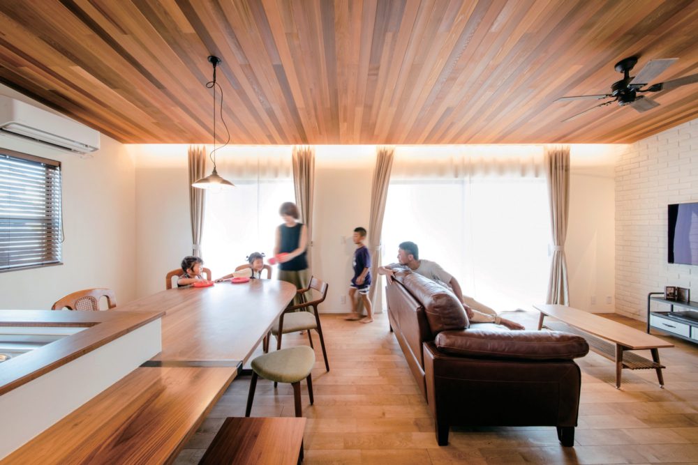 (ご主人)宮下さんにお願いしたことの中で、大きかったのは間取りの変更ですね。最初のプランでは、キッチンやリビングの近くにお風呂や脱衣所がありました。でも、下の子たちがまだ小さいので、その子たちの部屋をリビングの横に持ってきたいと思って。