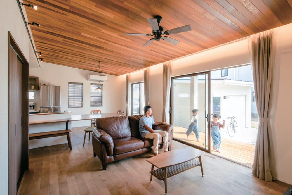 磐田市に完成したばかりの平屋で暮らすH様ご家族。