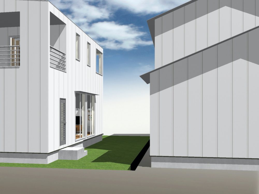 お客さまが購入を検討中の土地にサンプル的な建物を配置して、庭の大きさや光の入り方などを検討するのに便利です。