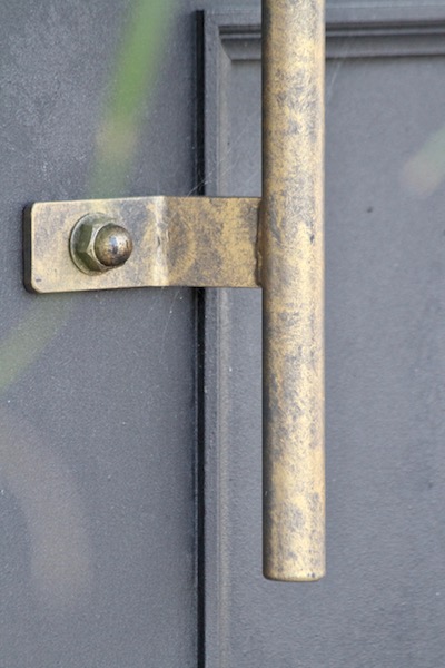 取っ手にゴールドの塗装を施してアンティーク感をアップ。お店の“顔”が完成しました!