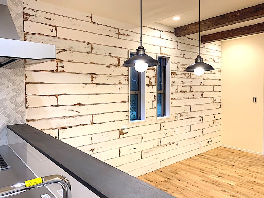 ダメージ加工がうまくいったら、今度は板を壁に1枚ずつ貼り付けていきます。