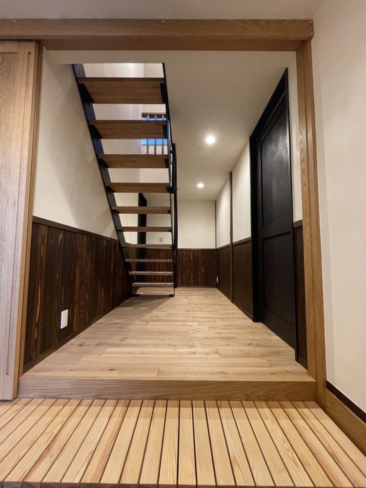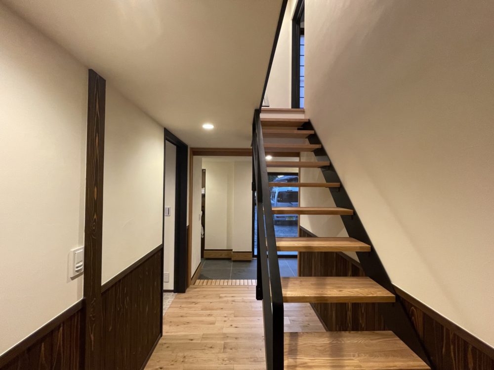 スリムな印象でモダンテイストの家に合うアイアン階段。