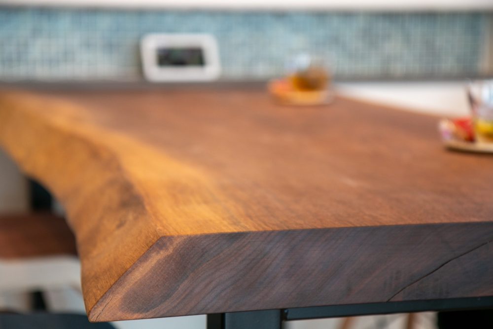 その点、バルハウスが仕入れた一枚板に、オーダーしたアイアンの脚を付けて仕上げれば、コストを抑えながら家の雰囲気にぴったりのテーブルができますよ。