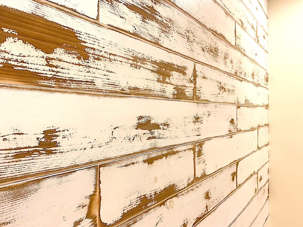 廃材を再利用したみたいな壁。どうやってつくったの?