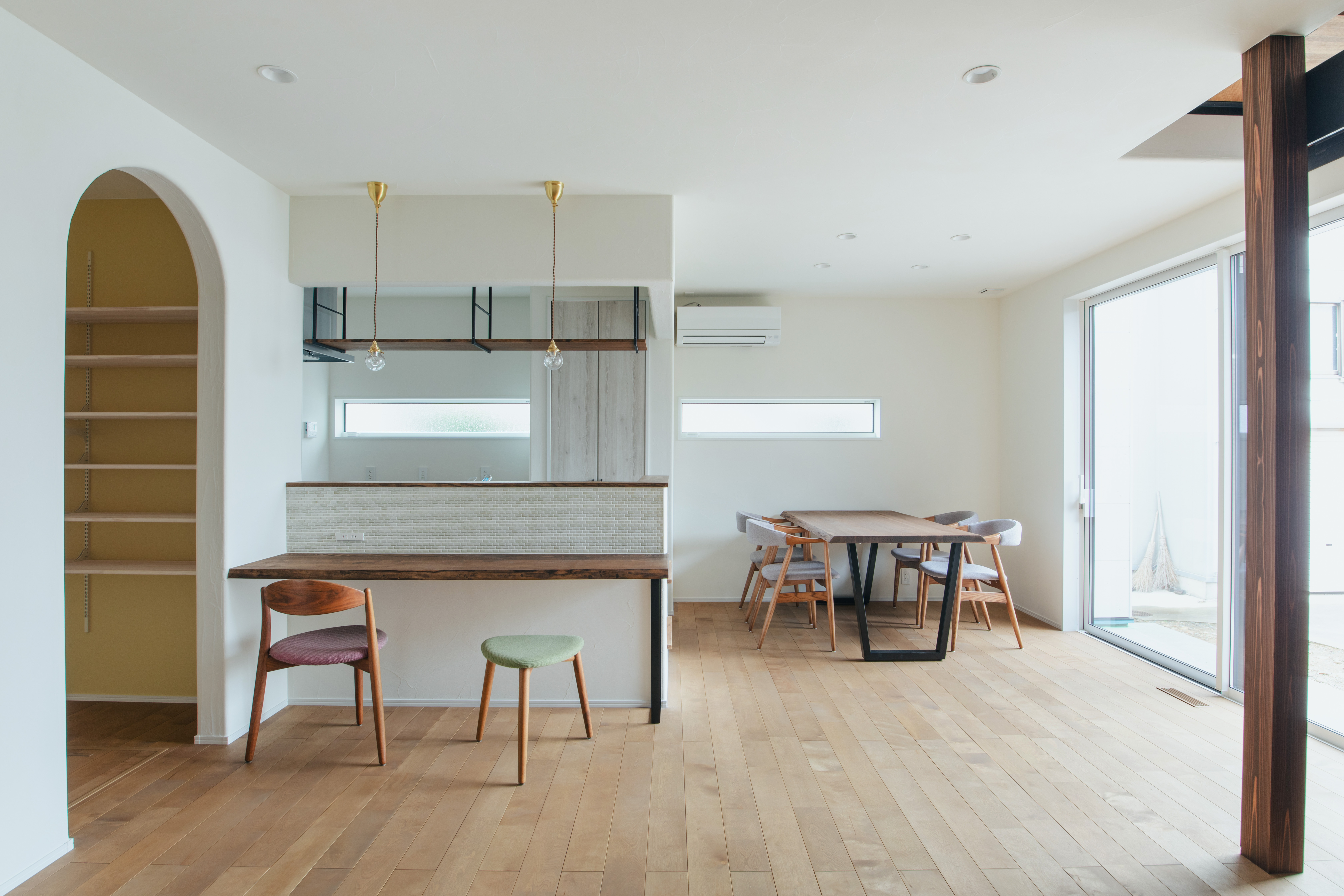 無垢の床・珪藻土の壁と自然素材をふんだんに感じられる明るいLDK