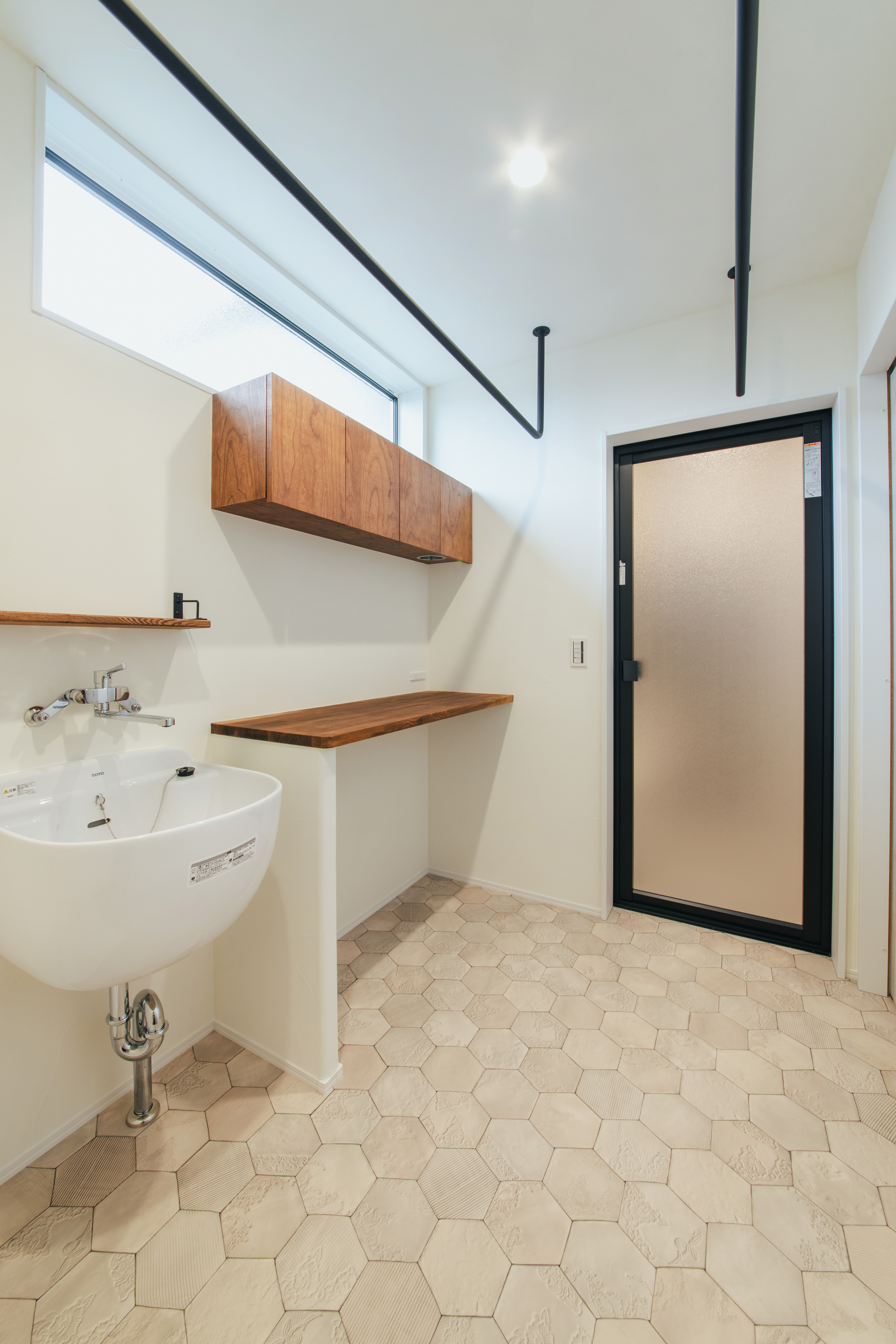室内干しも完璧!!たっぷり干せるランドリースペース 珪藻土の壁&天井で調湿効果・防臭効果でカラッと乾き生乾き臭も抑制
