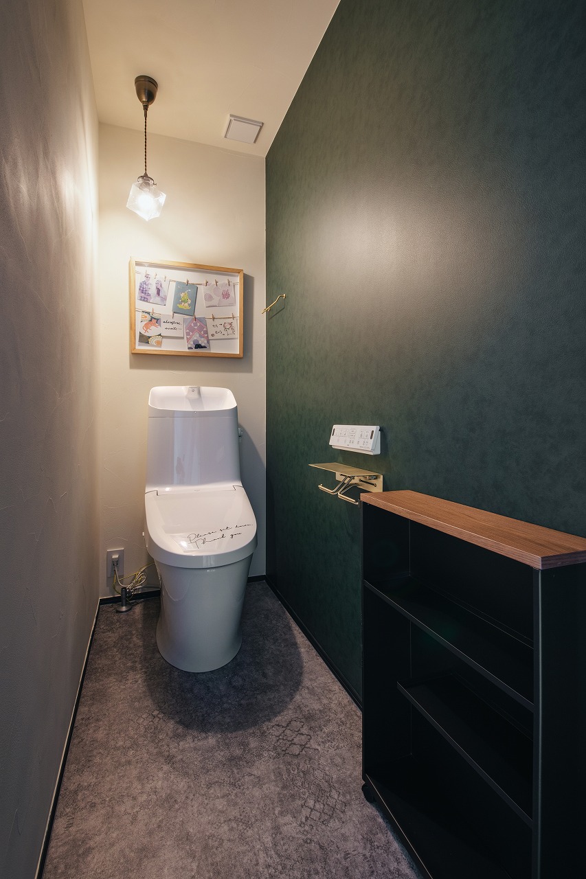 アクセントクロスがすごく素敵な落ち着いたトイレ