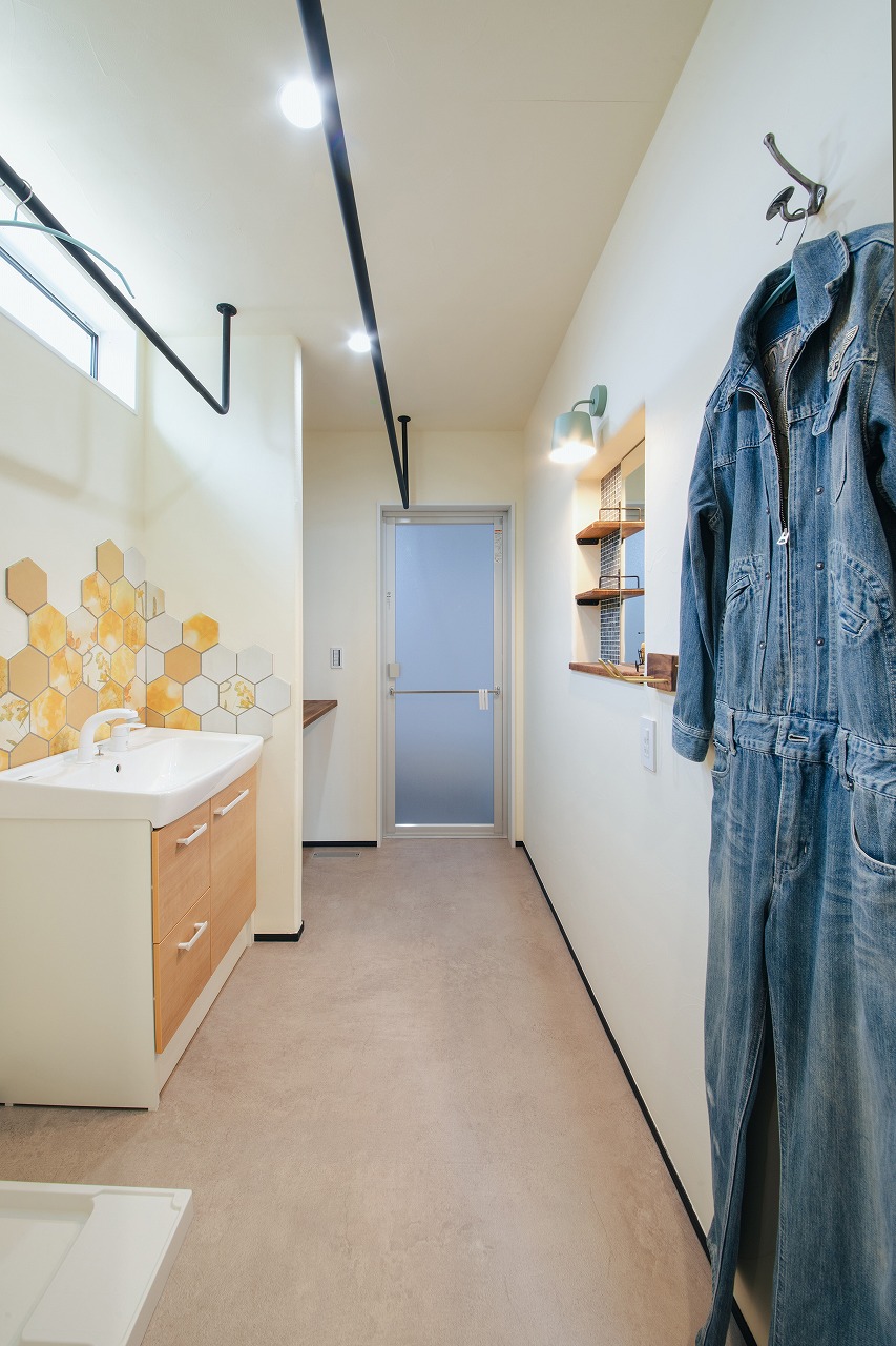 室内干しもできる 珪藻土の壁&天井の洗面脱衣
