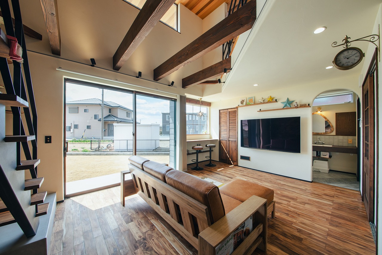高気密高断熱の住宅なのに、大きな掃き出し窓で開放的な空間